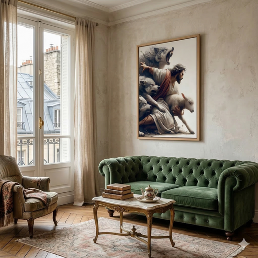 Jesus Protecting Lamb from Wolves